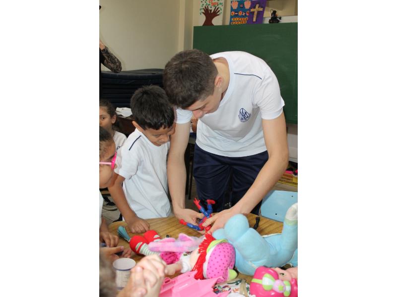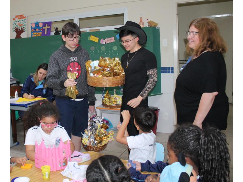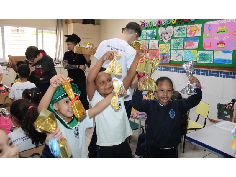 No dia 4 de outubro, os alunos do MAJC, juntamente com Maria Amélia e as professoras Lise, Janne e Irene, prestigiaram os alunos da Escola Santa Carmem com um dia repleto de diversão. Eles prepararam brincadeiras, músicas e momentos de oração. Ao final da visita, presentearam as crianças com deliciosos chocolates e massinhas de modelar.