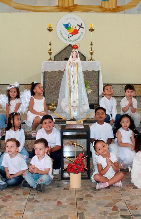 A turma do 3º ano, junto com a professora, foi até a capela para um momento especial de...Leia mais