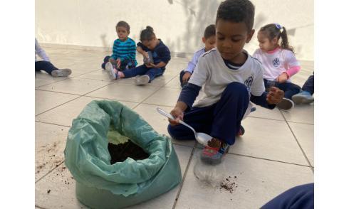 A turma do Infantil 4 plantou sementes de feijão, relembrando o conto "João e o Pé de Feijão",...Leia mais