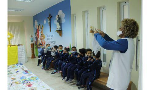 Os alunos do 1º ano confeccionaram uma pombinha em preparação à vinda do Pentecostes. Ao...Leia mais