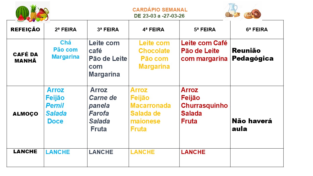 Cardápio 23/03/2026 à 27/03/2026